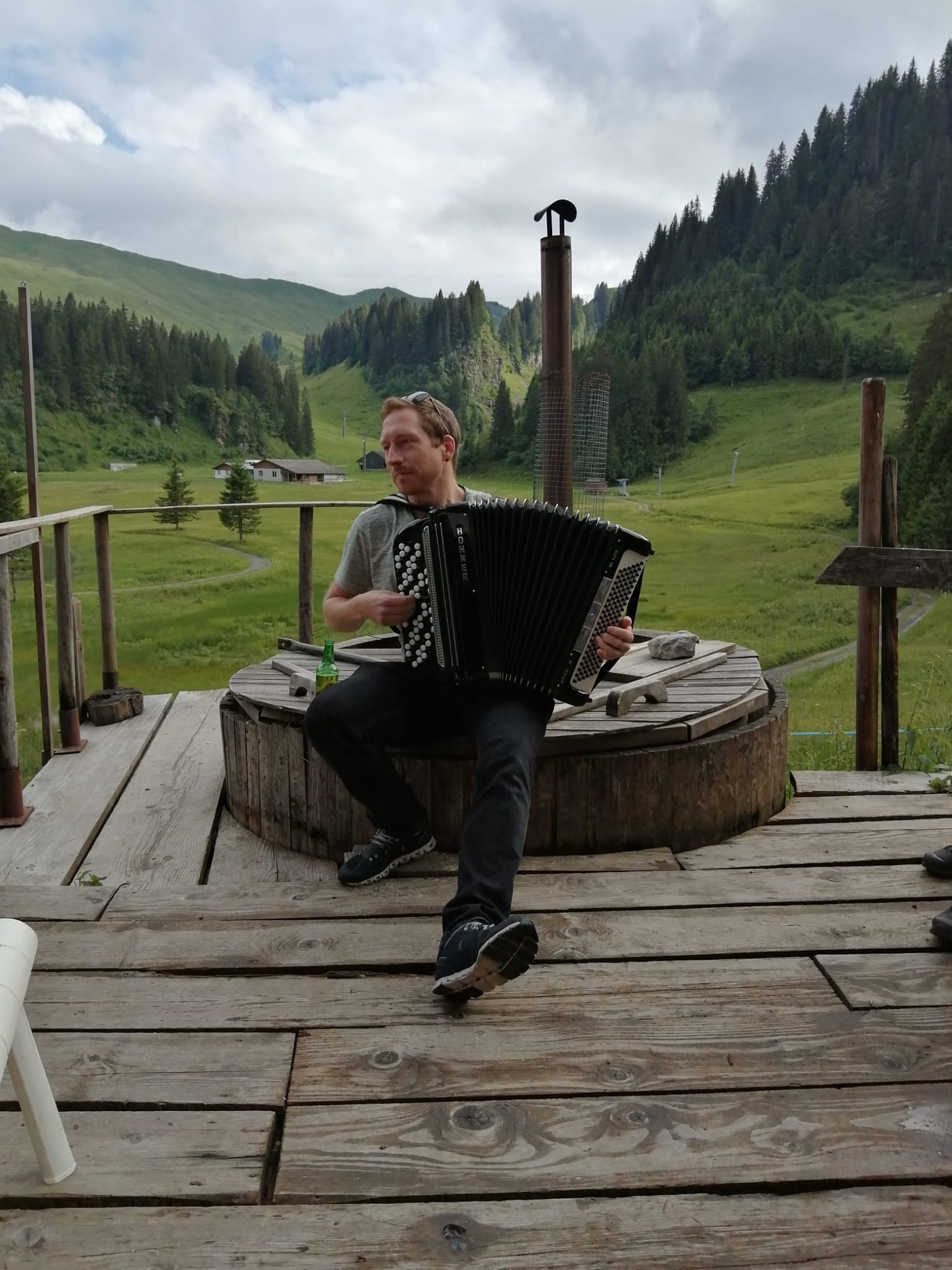 I started playing the accordion at the age of 10 and found my enthusiasm for making music. The greatest thing for me is when I can make people happy with my music and offer them unforgettable, cozy hours.